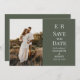 Modern Dark Olive Monogram Photo Save the Date Invitation