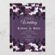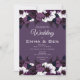This wedding invitation is part of the Plum Romance Wedding Collection which includes RSVP cards, reception signs, photo backdrops, thank you cards and more, all with matching floral details.