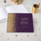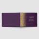 This elegant wedding guest book features a left-hand border of faux gold glitter on a dark purple background. Easily customise the gold-coloured text with the names of the couple in whimsical handwriting calligraphy over a large ampersand. Add additional text of your choice to the front and spine.