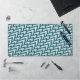 Modern Dark Teal Geometric Pattern on Light Grey Desk Mat