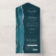 Modern Dark Teal Silver Agate Wedding All In One Invitation