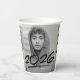 Modern graduation paper cups featuring the graduate's photo with "2025" displayed in black, handwritten lettering with a dash below. Personalise the photo graduation paper cups by adding the graduate's name and school name. The design repeats on the back. The personalised graduation paper cups are perfect for both high school and college graduation parties!