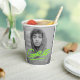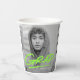 Modern graduation paper cups featuring the graduate's photo with "Grad" displayed in lime green, handwritten lettering with a dash below. Personalise the photo graduation paper cups by adding the graduate's name and graduation year. The design repeats on the back. The personalised graduation paper cups are perfect for both high school and college graduation parties!