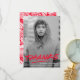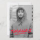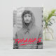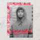 Modern graduation thank you cards featuring the graduate's vertical photo with "Thanks" in red handwritten lettering with a dash below. Personalise the photo graduation thank you card by adding the graduate's name, school name, and graduation year. The back of the card provides space for your typed or handwritten message with a background of red and white dashed brushstrokes.