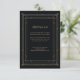 These glamourous wedding guest information cards feature a modern spin on classic art deco. An ornate, faux gold look geometric frame and ornamentation decorate an elegant dark onyx black background for a dramatic, vintage wedding look. You can use these cards for driving directions, reception or transportation information, hotel or accommodations information, and any other wedding details you need your guests to know.