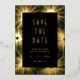 Bold gold foil firework bursts make a powerful impact on black with this modern art deco wedding Save the Date invitation.