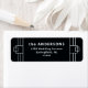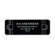 These glamourous wedding return address labels feature a modern spin on classic art deco. White geometric borders and ornamentation decorate an elegant dark onyx black background for a dramatic, vintage wedding look.