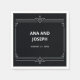 These glamourous wedding napkins feature a modern spin on classic art deco. An ornate, white geometric frame and ornamentation decorate an elegant dark onyx black background for a dramatic, vintage wedding look.