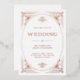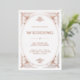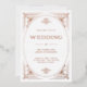 These glamourous rose gold foil wedding invitations feature a modern spin on classic art deco. An ornate, rose gold geometric frame and ornamentation decorate an elegant white background for a dramatic, glamourous and vintage wedding look.