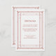 These glamourous wedding guest information cards feature a modern spin on classic art deco. An ornate, festive red geometric frame and ornamentation decorate an elegant very light silver/white background for a dramatic, vintage wedding look. You can use these cards for driving directions, reception or transportation information, hotel or accommodations information, and any other wedding details you need your guests to know. Perfect for your elegant Christmas holiday wedding.