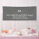 Modern decorative housewarming party banner features a simple design with a stylised elegant monogram medallion in grey and silver with white modern typography. "Welcome to Our New Home" message is presented in coordinating modern typography, along with customisable text for family name, address and established date. Personalise with custom monogram initial, family name, address and established date, or or use the "contact this designer" button for help. A perfect way to welcome guests to your new home and your modern stylish housewarming party.