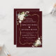 Modern Deep Burgundy White Ivory Flowers Wedding Invitation