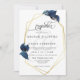 Wedding Invitation | Modern Deep Indigo Blue Leafy Foliage surrounds a gold multi-faceted frame - sparkles shine on the leaves and a deep indigo blue reverse. A combination of script calligraphy combined with a minimalist, contemporary style text layout makes it a trending style wedding suite. Design created for TheBarefootBride™ by © WhimsicalArtwork™. This is part of a wedding stationery suite collection with matching wedding accessories also baby shower and other occasion stationery. Feel free to contact us if you need assistance.