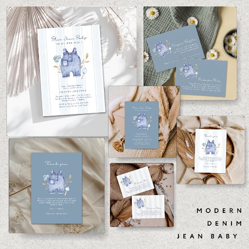 Modern Denim Blue Jean Stripes Baby Shower Invitation