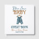 Celebrate the arrival of a little cowboy with this Blue Jean Baby Shower Guest Book! This charming design features a watercolor denim baby bodysuit hanging on a hanger, perfect for a rustic or western-themed baby shower. The classic blue jean aesthetic adds a trendy and gender-neutral touch, making it ideal for celebrating a baby boy. Customise the details effortlessly to create the perfect theme for your special event.