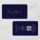 Modern Dentist Monogram Orthodontist Midnight Blue Gold business card with QR code