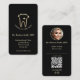 The Elegant Modern Dentist Orthodontist Dental Black Gold business card. With its stunning gold tooth logo, round photo, qr code, and customisable text in opulent gold, this card exudes elegance and refinement. The dark background accentuates the shimmering gold elements, creating a sense of luxury and exclusivity. Whether you're networking with high-end clients or building your brand, this card will make a lasting impression and set you apart from the competition. Let your business card speak volumes about your expertise and style with the Elegant MINIMALIST MODERN DENTIST GOLD TOOTH card.