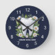 Modern and elegant dentist clock, featuring a watercolor logo with a tooth nestled inside a beautiful floral wreath adorned with delicate white flowers and green foliage. The front showcases one lines of text for your name or business name. This exquisite design is perfect for any dental professional looking to make a standout impression.