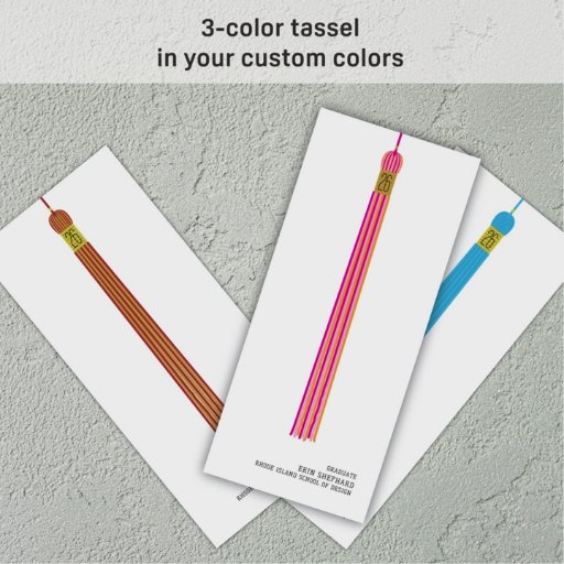 Easily customise all colours to match school colours, degree programs, or your own personal palette. This modern graduation announcement features a bold tassel graphic formed from flowing colour bands, creating a striking contemporary design that can be edited to coordinate with any colour scheme.