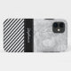 Modern stripes custom photo iPhone 5 case features diagonal black and white stripes and a black accent border frame for your name, initial or other text. Add your favourite photo! Show your personality with this trendy and unique iPhone 5 case. Makes a great gift for all occasions. Click the "Customise it!" button to change the text size, text colour, font style and more!