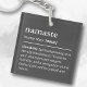 Namaste Definition black keychain for yoga lovers. White minimalist typography on trendy square charcoal keychain. Yoga accessory with a dictionary definition of the Sanscrit term "namaste" in clean and simple modern design. What does Namaste mean? A Spiritual greeting that literally translates to "Praise to you" and expresses respect, humility, and a recognition of the divine spark within oneself and others. Makes a great gift for a spiritual friend, a yoga or pilates fan, as a teacher appreciation gift for your yoga instructor - or unique and stylish accessory for yourself. The neutral charcoal grey tone goes well with any outfit, but feel free to change it to your favourite colour entering the Design Tool.