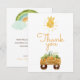 This modern dinosaur white baby shower thank you card design features a vibrant colour palette including cute little baby dinos and a colourful rainbow and sun, creating an atmosphere of joy and excitement for the celebration. This design evoke a sense of adventure, transporting you to a world where dinosaurs roam and trees stand tall. Whether you're a fan of the prehistoric or simply love modern, playful aesthetics, this collection offers a perfect blend of nostalgia and contemporary style to make your baby shower a truly memorable event!