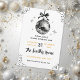 Get ready to dance the night away! This chic New Year’s Eve invitation features a retro-inspired disco ball hanging from a classic black bow, perfect for a high-energy "Ring in the New Year" celebration. The clean white background is accented with silver streamers and sparkling stars, creating a festive, mirror-ball effect that stands out. The layout features a stylish mix of gold and black typography, including an elegant script for the host's name and modern block lettering for event details.
