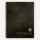 Modern Black Chestnut Brown Distressed Leather Texture Background Brushed Metallic Gold Monogram Medallion Initial Name Title Custom Text Home Office Work School Notebook