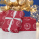 Stylish and fun, this gift wrap is the perfect accessory to your holiday gift-giving needs. The design features a solid red background with a white, round stamp with the text "Don't Open Until Christmas" and the date "Dec 25." Great for packages, letters, and any other gifts you need to seal for the Christmas season. Merry Christmas and Happy Holidays.