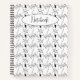 This is cute notebook design featuring a line drawing of a dog's head made into a whimsical repeating pattern. It is hard to see where one dog begins and one ends making it modern and fun. For this version, the drawing is done in black lines against a white background. There is an ellipse on the front (top and center) where you can then add your own text. Right now, it reads, "Notebook," but you may change it to fit your needs or even to personalize it with someone's name to make a special, personalized, custom gift. This design is especially perfect for dog lovers and owners everywhere.