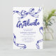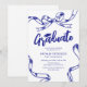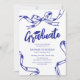 Celebrate your graduate's milestone with these graduation party invitations that blend a timeless white backdrop with a modern blue sketched bow and ribbon border. Coupled with a customisable text template, these invitations are a beautiful way to commemorate this life-changing event.