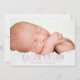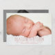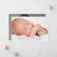 Thoroughly modern and simply elegant, this design features two large photos of your baby girl - one on the front and one on the back. The front also holds baby's important birth information and parents names. Contemporary styled fonts add to the modern look.