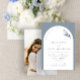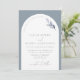Modern Dusty Blue Arch Botanical Photo Wedding Inv Invitation
