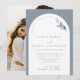 Modern Dusty Blue Arch Botanical Photo Wedding Invitation