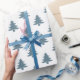 Modern Dusty Blue Christmas Trees Pattern Wrapping Paper