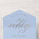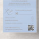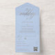 Tailored for your romantic wedding, this sophisticated invitation strikes the perfect balance between elegance and practicality. Featuring luxurious faux gold calligraphy reading "The Wedding Of" on a soft dusty blue background, this all-in-one invitation seamlessly organises all your wedding details in a sleek, stylish format. The accompanying RSVP card offers guests the flexibility to tear and mail or scan a QR code for easy access to your online wedding information, ensuring a modern and convenient experience.