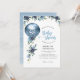 Modern Dusty Blue Floral Balloon Boy Baby Shower Invitation