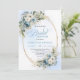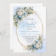 Modern Dusty Blue Flowers Gold Frame Bridal Shower Invitation