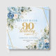Celebrate a once-in-a-lifetime milestone with this elegant 90th birthday guest book, designed in soft dusty blue, pastel blue, pale blue, and light blue tones woven with shimmering gold accents. The beautiful watercolor florals blend eucalyptus greenery with refined blue blossoms, surrounding a delicate gold-frame layout perfect for a sophisticated birthday celebration. This customizable 90th birthday sign-in book lets you add your own name, date, and event details, creating a meaningful keepsake guests will love signing and sharing memories in. Ideal for elegant décor themes, this design complements luxury parties, modern celebrations, and timeless milestone gatherings. A perfect blend of style and sentiment, this personalized 90th birthday guest book becomes a cherished heirloom filled with warm wishes, laughter, and unforgettable moments.