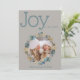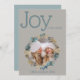 Trending shades of dusty blue and gold philodendron foliage surrounding a round photo frame with a mushroom grey background. Joy to the World in contemporary font (which you can change if you like) . Easy to customise - the reverse is a second place for a favourite photo, ideal for your friends and family to frame!