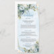 Pair with matching invitations, place cards, and table numbers for a cohesive, stylish look. Make your reception unforgettable with this dusty blue and gold floral menu — the perfect finishing touch for your elegant wedding day.