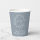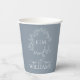 Modern Dusty Blue Leafy Crest Monogram Wedding Paper Cups