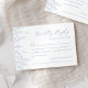 This wedding RSVP features delicate, cascading hand drawn botanical illustrations in a serene dusty blue hue, reminiscent of gentle foliage or ethereal branches. The elegant script typography complements the organic motifs, creating a harmonious and sophisticated aesthetic. The overall impression is one of understated beauty and timeless charm, perfect for a refined and natural theme.