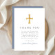 Modern Dusty Blue Religious Boy First Communion Thank You Card.