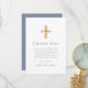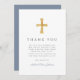 Modern Dusty Blue Religious Boy First Communion Thank You Card