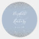 Modern Dusty Blue Silver Glitter Edge Wedding Classic Round Sticker