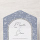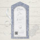 ALSO AVAILABLE WITH A QR CODE TO SCAN IN THE RSVP AREA OR WITHOUT DINNER SELECTION OPTIONS. This simple but elegant wedding invitation design features a beautiful dusty blue background with softly falling white snowflakes. The text is displayed on an arched white text area over a faux silver glitter arch for extra winter sparkle. Created by Simply Farmhouse Press.