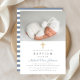 Personalised Modern Dusty Blue Stripes Cross Photo Boy Baptism Invitation.
