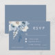 Modern Dusty Blue & White Floral Wedding RSVP Card
