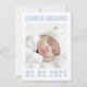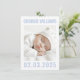 Modern dusty blue white new baby photo birth announcement